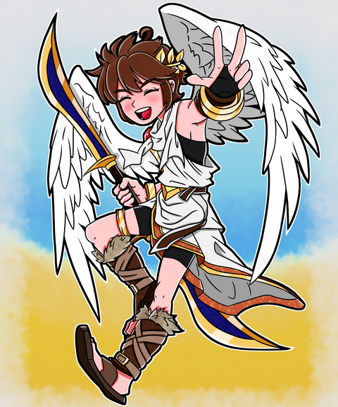 Pit from Super Smash Bros Ultimate!Woohooo here is another super smash bros character illustration! Recently I've enjoyed playing as Pit. He's a goofy character, I mean, what other character shouts "I never learned how to read!" before their star KO?! Haha I've looked up some interactions in Kid Icarus:Uprising and some of them have genuinely made me laugh, which videogames don't tend to make me laugh often. Truth be told, I actually haven't been able to play a Kid Icarus game, but I really want to! Finger's crossed that some version of it will be coming to the switch soon! If you have played a Kid Icarus game, let me know how it was!!