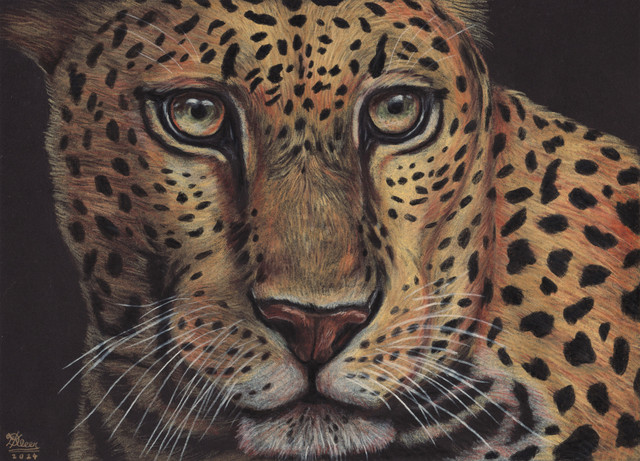 Firstly this drawing definitely has the wow factor. In other words a viewer's jaw will drop just like the leopard's jaw in this drawing. Visually this is an absolutely stunning piece of art. It's safe to say this drawing will have a very good impact on most if not all of the viewers. It seems as if the leopard is about to jump out from the screen. In terms of technique, much is to be praised. In particular, the execution of the eyes, mouth and nose of the leopard as well as the texture of the fur is so well done such that the drawing as a whole flows very well. It is extremely realistic. I keep looking back to the drawing and thinking it is a photograph. I have to say the technique is flawless. An excellent use of colours, shadows, and highlights. I have no doubt other viewers feel the same way. A constructive criticism (which is actually not very significant in the scheme of things and does not detract from the drawing) is that the brown wood the leopard is on (or platform of some kind) seems to not have received the same attention as the leopard which is understandable. Ultimately however this drawing impressed me so much I had to write a critique (my first in fact). Overall an absolutely fantastic piece of art!