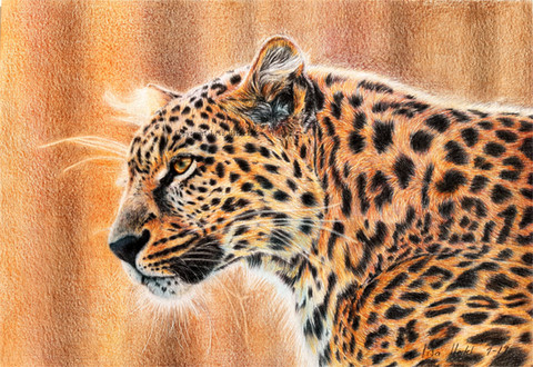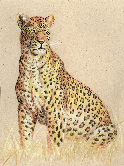 Drawing a Leopard, coloring with Pastel sticks and pencils on paper
