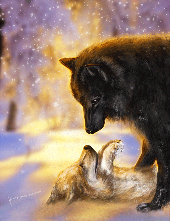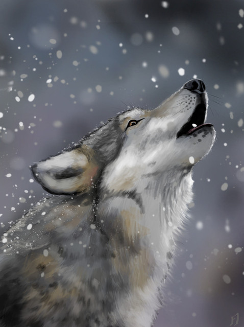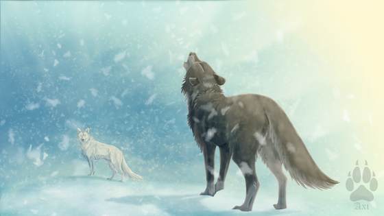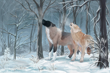 This is a really beautiful piece. I love the lighting and the colors. You even added the detail of their breath showing in the cold air. The snow is a nice touch to the piece as well. The sky is pretty, and the wolves look very realistic. You definitely have a gift for drawing animals. You should try selling this artwork on a postcard or a birthday card. A lot of people would probably love to buy it. (I know I would if I had the funds.) I think this piece deserves a lot of favorites and views. I hope you get the attention this art deserves. I can tell that you've worked hard on it, good job on this.