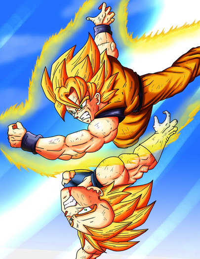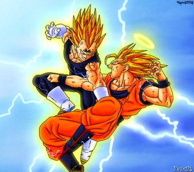 Goku and Vegeta in classic "I hate you" battle modeRelated content