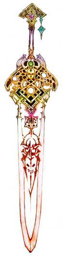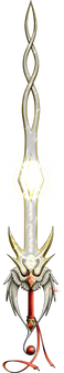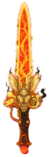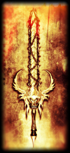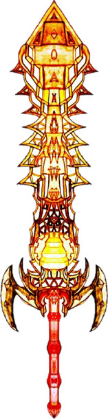 Look at the hilt; like great fiery wings. Look at the blade; swirling with eternal fire. And the archaic runes; like a face with a piercing eye, tipped by a fierce beak.