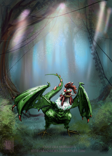 I always learned about Basilisk like the monster I portrayed here; cockatrice is a totally new word for me. Even Medieval Bestiary books, basilisk is like that.