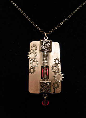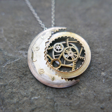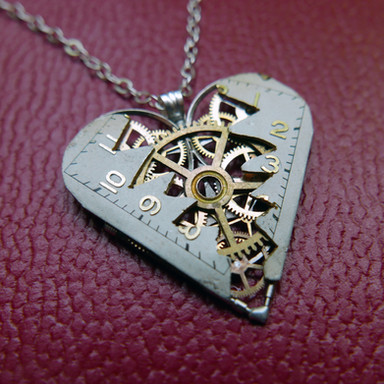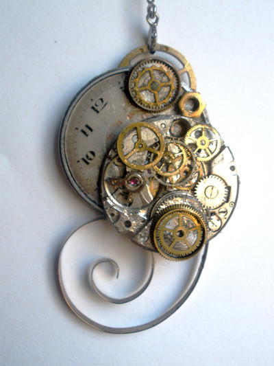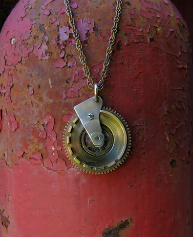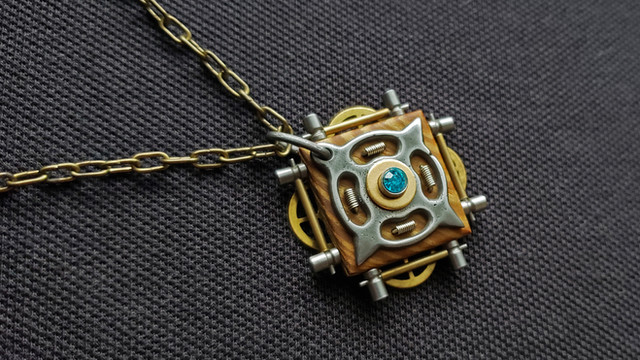 buy: [link]Rotator was made with a vintage watch face that has been cut into four rectangular parts. In sets of two, the parts were soldered together along with watch gears, stems and cogs to create a cool rectangular over diamond effect. All parts are recycled from old and unloved watches, cleaned, and soldered into place using lead-free silver bearing solder, rather than glues or resins found in many craft items. Each piece at A Mechanical Mind is hand designed and assembled by an artist, and each piece is one of a kind, and never to be reproduced exactly.