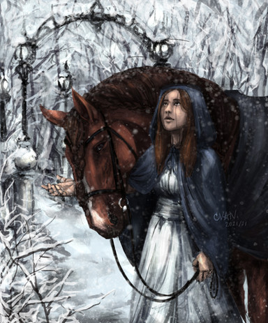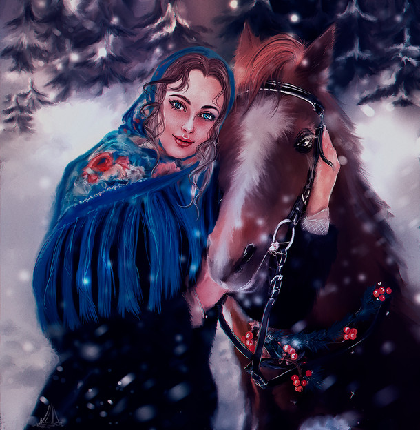 Horse pixabay.com/photos/main-and-st… Patterns on the dress pixabay.com/vectors/floral-doo… Both photos are legal and licensed for free. Everything else is painted by me. Before and after Snowfall If you are interested in a commission done by me please contact me at Contact: a.amedeya@gmail.com