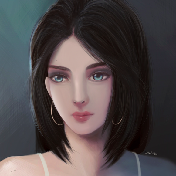I tried a new style of painting with this portrait! Instead of using line art, I used blocks of color to get the composition down. I think this method really streamlines my process and I can’t wait to experiment more with it.---