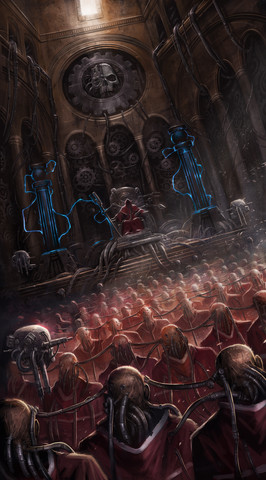 I love the shoulder pads from each chapter hanging on the walls, almost like shields of knights bearing their house sigils.