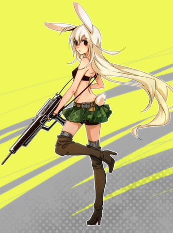she's an adorable care-free bunny-girl thing, holding dangerous murderous weapons. o____O" haha ookiie..XD