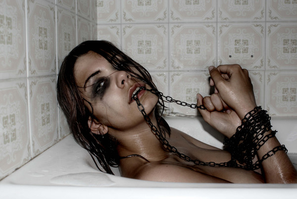 You know that's a really good idea you can wash your laundry body and chains at the same time. I'd probably take more showers if I went to my tub and she was in it like that. You know now that I think about it. that's actually a bad idea she may drown or worse you may end up with rusty chains. although I suppose that is easier to clean up rusty chains than a dead girl out from your tub.