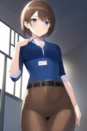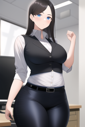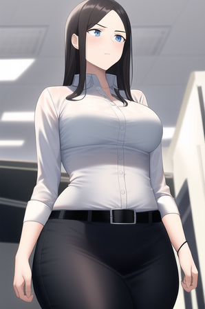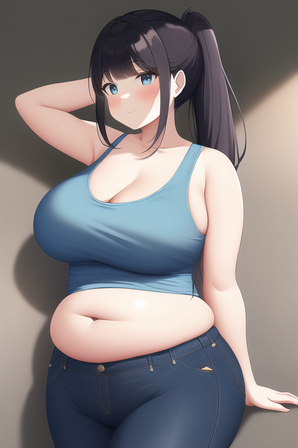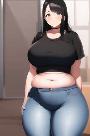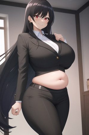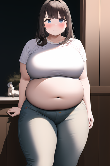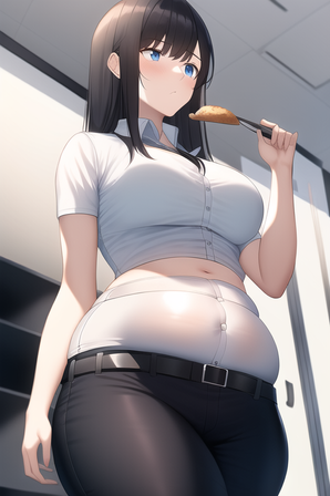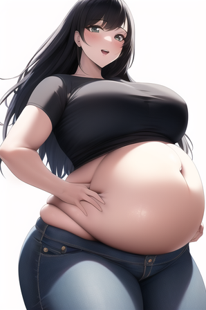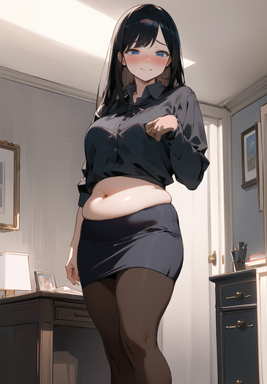 At your behest, Rachel has been starting to, uh, blossom a little around her middle. Of course, she plays it off as shrinking clothes...Created with NovelAI