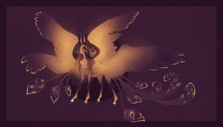 Some design notes, they do have one wing! The left side is basically just a bunch of feathers where the wing would be. I can imagine both sides are pretty identical except for maybe the black streaks? As for the eyes I had imagined the mask being "part of the body" therefore no eyes BUT if the buyer chooses to take it off I had imagined their eyes to be fully black with a golden ring/pupil in the middle. But that as well as everything else is up to interpretation π€