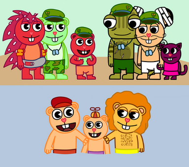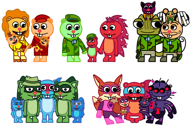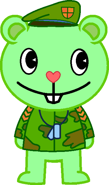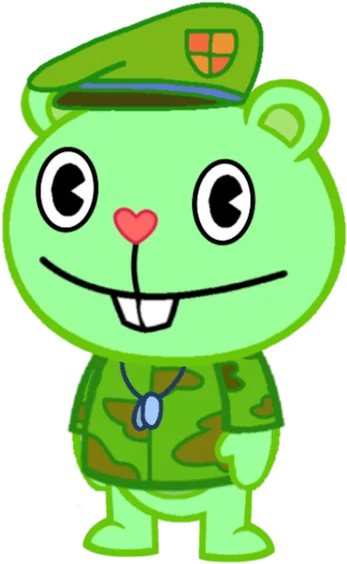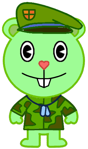 Bio: He is Flippy and Flaky's son. He loves topics about war very much, and he always likes to listen to the stories that his father, Sneaky and Mouse Ka-Boom tell him about their time in the army. His dream is to become an soldier when he grows up, even though his parents prefer he to be something else, because they fear that he ends up having PTSD. He has an very good relationship with Sneaky, Mouse Ka-Boom, Denisse and Bomb who are referred to as: "Uncle Snake", "Uncle Ka-Boom", "Cousin Denisse" and "Cousin Bomb". He knows about the existence of Fliqpy, because once he could see him, although he didn't notice his presence, but in spite of that he isn't afraid of him, since he knows that his father can't control himself when he becomes in him, knowing this, Fluffy is continually trying to find the way for Fliqpy to disappear permanently.Β So far Fluffy, Denisse and Bomb haven't died or suffered injuries.