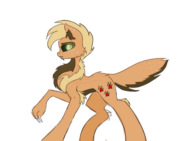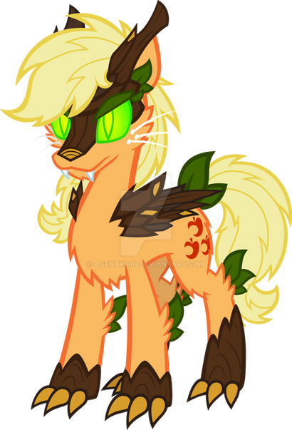 Sorry if the chunks of wood on her back look like wings; they're supposed to be wooden armour.Her cutie mark is just like Applejack's cutie mark, but the apples have bites taken out of them.