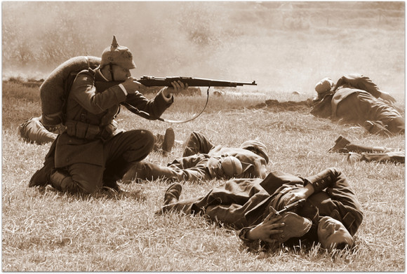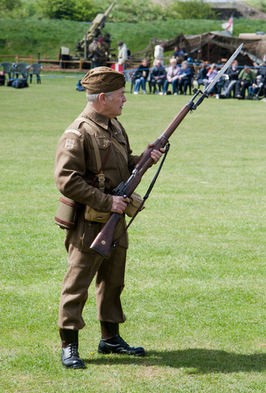 A soldier firing five-rounds-rapid reloads his rifle during the World War 1 re-enactment at Tankfest 2012, Bovington, United Kingdom.Shot with Panasonic Lumix GH1 with Lumix 100-300mm lens. Developed in Lightroom, some tidying in GIMP.
