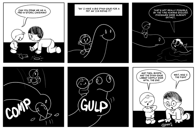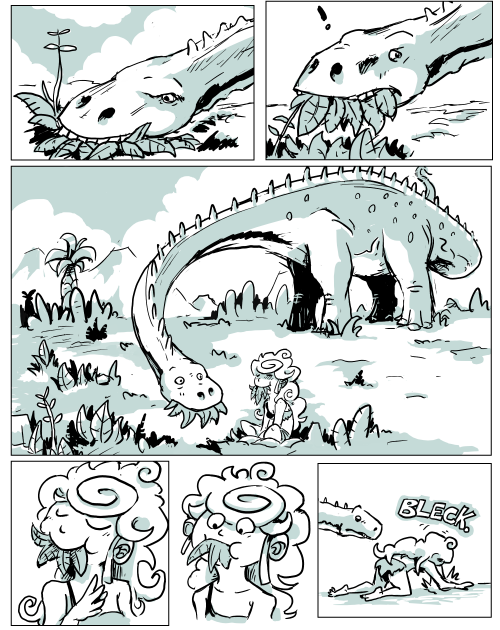 On a side-note, I think you're genious for not drawing your characters from a straight-up view-point. I like how it's tilted of center; gives it much more character.