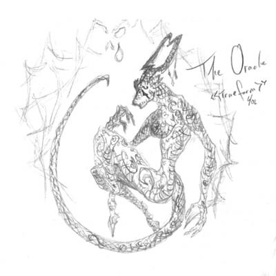 Physical beauty cannot be assumed to correspond to moral beauty. Nor can it hide immorality.This is Mae, one of my older continuous characters in her most human-looking guise and now sporting some fancy new clothes. (Not that Mae wearing fancy clothes is new--it's kind of a trademark for her--but this is the first time that I've drawn her with this particular outfit.)