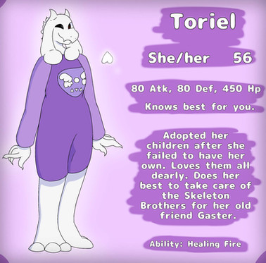 Name: Toriel Title: Queen Toriel Dreemurr