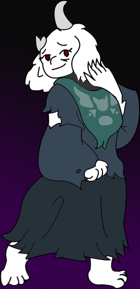 The ex-Queen of monsters turned exile turned caretaker of the ruins turned Snowblind. Records state that she was the first one to turn Snowblind, targeted by the curse due to her fire magic. After the curse was discovered, Toriel tried to care for as many of her citizens as she could. But as the curse took hold of her, spreading throughout her very soul… she couldn’t let them out. But they’d be trapped with her if she didn’t. This train of thought in-fighting continued until one day, a human fell. The last human Asgore would need to free monsterkind… She opened the door.