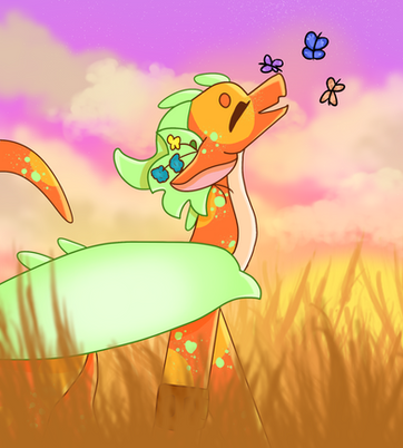 I'm testing out new cloud brushes by Devin Elle Kurtz! What's a better way to try it out than drawing Cricket seeing grass for the first time?So I've been debating whether I should keep the confetti or not. I really like how the clouds look since I worked on it so hard, and the confetti kinda distract you from seeing what's behind. Though after asking friends for opinions, they all unanimously decided I should keep it there :3