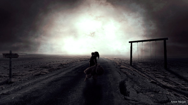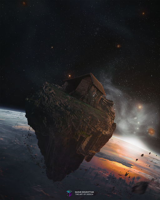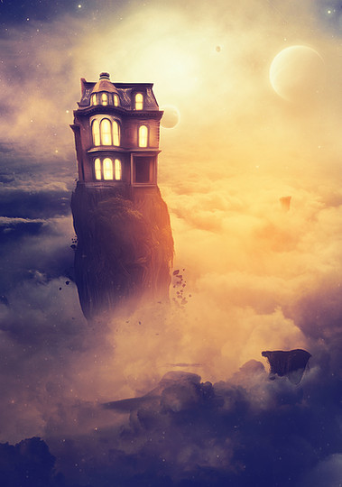 #fantasy #floatingisland #manipulation #orange #photoshop #sunset #walking
