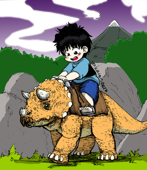 So I was contacted by Heath who wanted me to make a present for his son! I draw them riding on Triceratops! It was such an adorable and fun commission! I love drawing loved ones and such. <3If you're interested in a commission please contact me at kathrynwilkins@me.com Commission info here: [link]