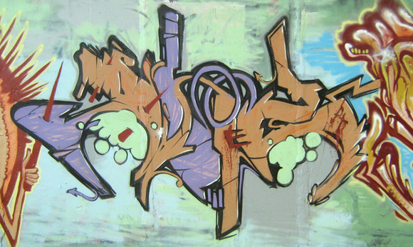 The colours are brilliant, really vibrant. The placement is fantastic, the plant's green really works well against the purple and orange. I like the jagged effect of the lines