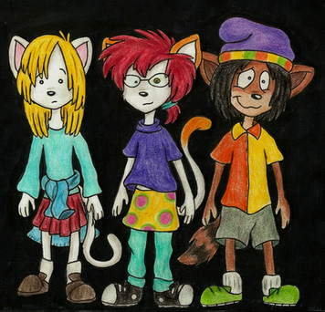 I'm such a total dumbassss xDD;Gijinka version of Ruff, Chet, and Blossom from Fetch! with Ruff Ruffman