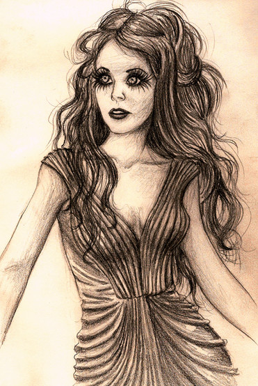 You do such wonderful drawings. I love how youve done the folds in the dress. Beautiful detail and shading. The muted background is such a nice contrast. It really makes the figure stand out just enough to give real depth and demension. Great drawing.