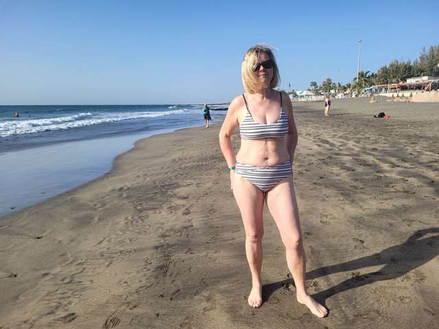 great body, nice and lean, gorgeous legs and waist. the red bathing suit goes well with your skin tone too