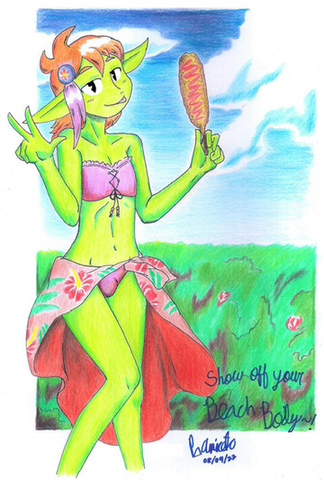I drew a goblin girl background character at the first panel of this strip and the first thing that came to my mind for this gal after cleaning up the page was..."I have to draw you". So... Here we are.