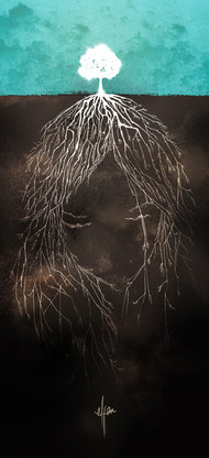 acrylics, pencil colour, ink