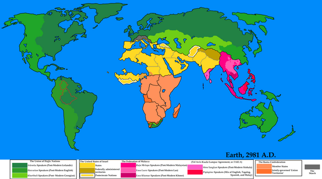 My interpretation of the world of Judge Dredd as of the series' "present day".Please note that I have taken a bit of artistic license in adding a few more Megacities.