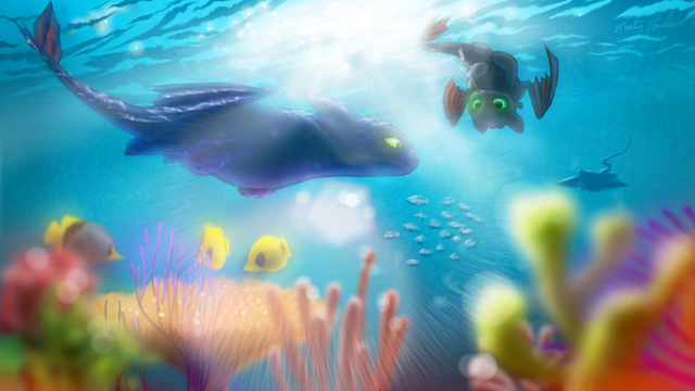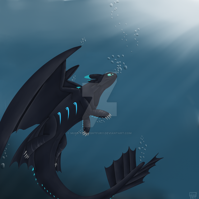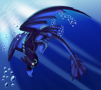 This idea I had right after buying October from Vhitany and as I had a bit of time yesterday evening after having action the whole day, I simply had to try to paint it. This is the result. It's a bit dark but that's exactly how I imagined it. I have to say that this is my first night fury and my first underwater painting aswell. But I'm very pleased about how it worked. In fact there's still a lot to learn, but for the first time it's more than okay in my eyes. I hope you like the little oneAbout him: he's an emperor night fury and currently diving underwater to get something between his teeth, he's very hungry but the time for beeing fascinated about the world he sees in the cold water is still there. I think he's very curious and a little dreamer xD