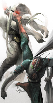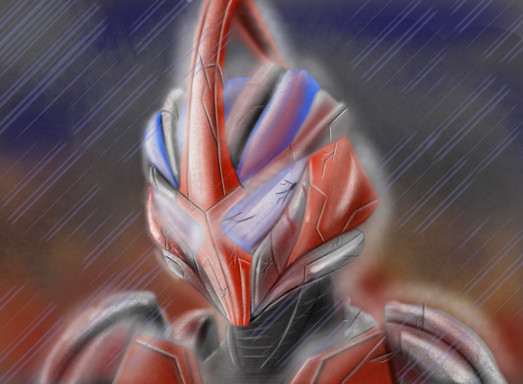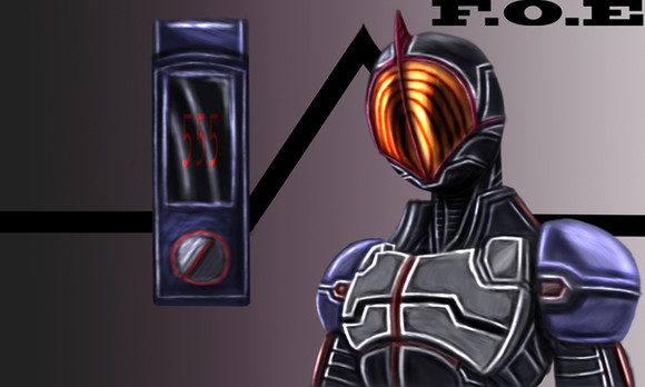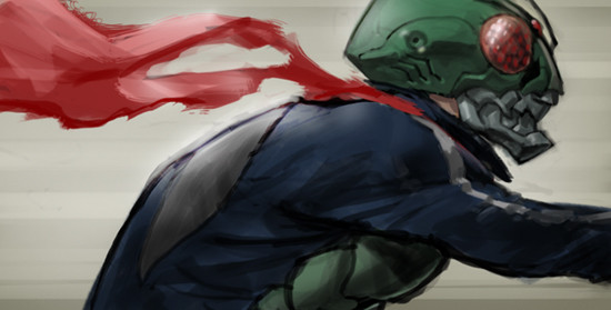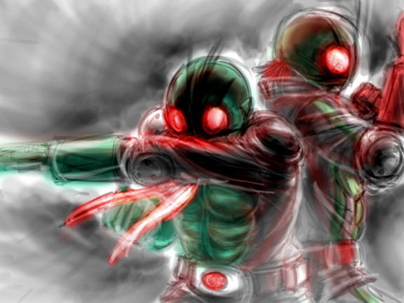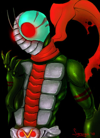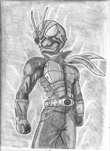 A drawing of Kamen Rider 2 from the new movies.Poor guys bein eaten alive by the very technology that brought him back from the dead.