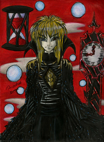 I know it's a bit dark, blame my scanner which died quite a while ago. I had to use my new digital camera- of which I will be using for a while until I get a new scanner.Yes, this is a drawing from the movie Labyrinth. I couldn't help my hand from moving after seeing the movie again just recently. Just randomness of the Goblin King kind.