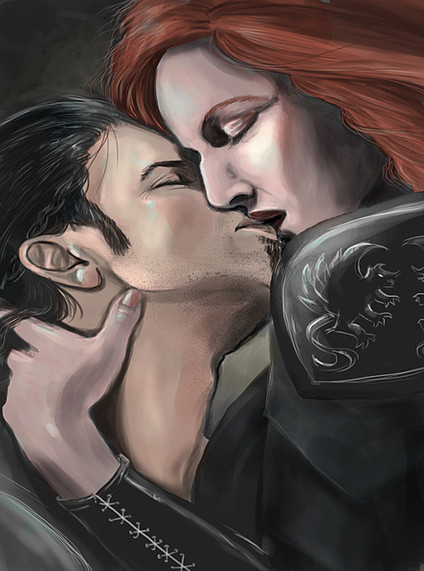 I've yet to do a playthrough of my own with a Cullen-mance, but from what i've seen in a few uploads, I say there's a great deal of emotion put into that romance ranging from heartfelt love to sexual tension and all of that has been beautifully captured in this artwork.