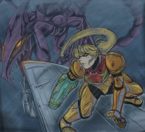 Awesome drawing of one of the best boss fights in the Metroid series!