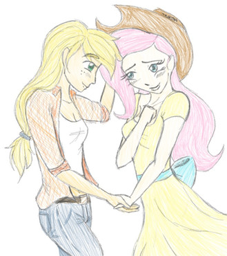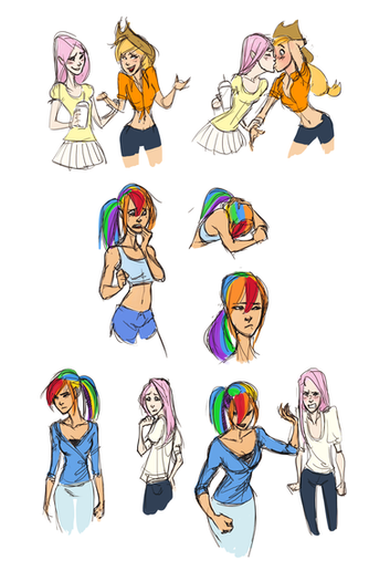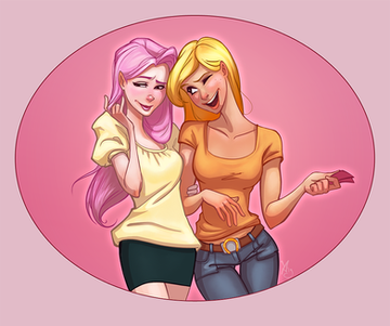 I'm usually not fond of long-haired Rainbow Dash humanizations, but I think this one looks fantastic! This could be one of the best RD designs I've seen, and 'Shy looks beautiful here as well. Great work!