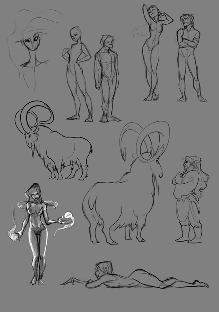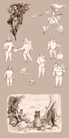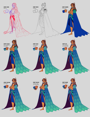 Lesson 5 had us clean up one of the previously brainstormed concepts for the characters. Here, I am showing all the stages of the process of my cleanup.