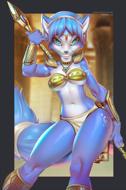 What a darling Krystal. Her big fuzzy ears are to die for and I'm sure they offer hours of entertainment for her gooby captain. She's very lovely and seems deep in her own element. Probably on her homeworld if I had to guess, it's as pretty as I imagined Cerinia being. You got her tattoos down which isn't much but you'd be surprised how many artists omit or just flat out forget them. Some just make a "blue fox with big tits" but this channels a lot of Krystal's sly attitude we've seen in game. Krystal's plating is also very well done, looks very ceremonial and it's all there. Very lovely Krystal and a fantastic job.