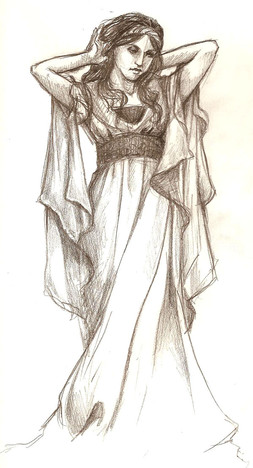 Ah, this is perfect...I just love this style. Beautiful line work and hatching, simple coloring that preserves and enhances the line work. And you've done a masterful job with the drapery. Absolutely beautiful.