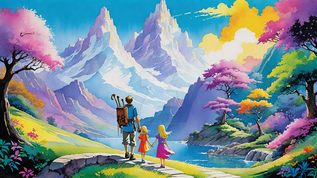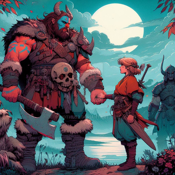 #fantasyart #epic #knight #digitalart #cartoon #anime #characterdesign #warrior #digitalpainting #fantasycharacter #children #meeting #mountain #summit