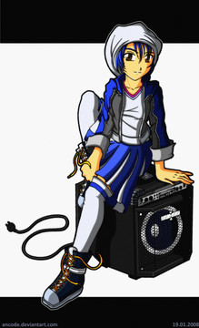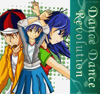 In this pic I tried so hard at the beginning, but in the final stages of the cging I started to ... get tired of the big error of the big head so thats why I didn't try so hard in the background T.T. the logo is inspired in the logo of a game I really like the desings ^^ is not from a ddr game still I adapted it... I even included a sol key in the center XD
