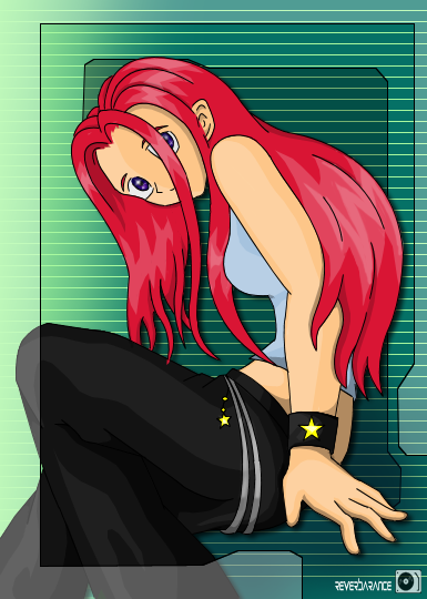 btw this is Alice, a character that use to appear in the Dance Dance revolution games as a dancer. I use to choose her all the time... cuz... is so cuteee -^^- I find that she and Emi are the cutest characters of all the ddr ( the dancers use to be quite weird and odd ^^U ). I wanted to draw her since I first saw her in ddr 5th mix ... aw