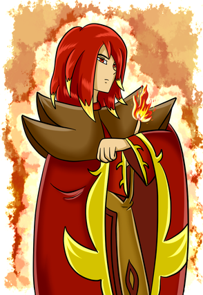This came out really great! I'm afraid I don't know what to leave for critique this time. ._.; This is like super nit-picky, but his fingers look like they're all about the same length. And I imagine that his outfit is material of some sort (not metal) but maybe the fire would create harder light and shadow? Sorry I can't help more. ;