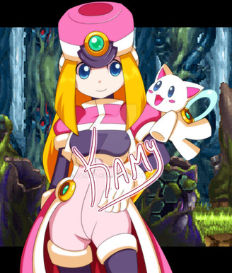 ah! el nombre Prairie que esta escrito es diseΓ±o mio tambien. es un ambigrama... eso significa que, si giras el dibujo 180 grados, se leera el otro nombre de Prairie, aunque sera un Spoiler si no habeis jugado a las sagas megaman zx y zero!