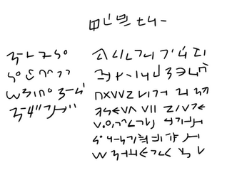 Another oldie. I think this was originally going to be an abjad--I wrote out the vowels separately at first, and they are smaller so I guess they were supposed to be diacritical marks on consonants. It was clear right away that that wouldn't work, so now they can appear separately. Actually, they seem to turn up wherever, which doesn't make it easier to tell the difference between a vowel and a part of a consonant. Not literally all over the place, but wherever there's white space between two consonants you can write a vowel. As you can see in the writing sample above, I tried to keep things as tight as possible. Sample text is article 1 of the UDHR.Since it's nearly illegible, I suppose it would be mostly useful for aesthetic or atmospheric purposes. Can be used for English. Doesn't distinguish between many vowels, so be prepared for homographs that are pronounced differently. ai=aj, oi=oj, and au=aw.