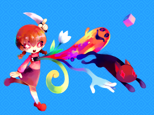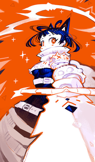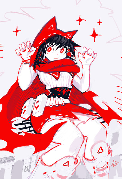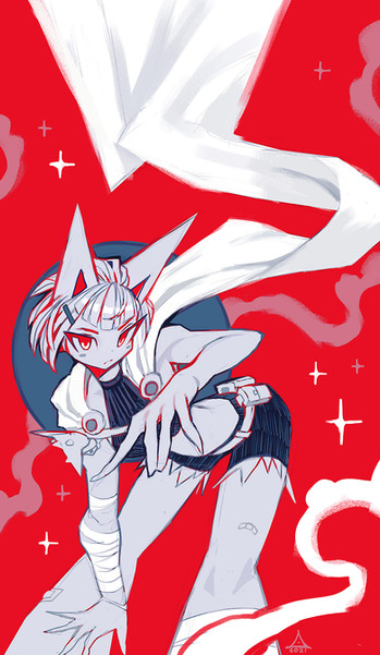#black #cape #catears #catgirl #cloak #hand #motion #red #sword #white #foreshortening #perspective #animemangagirl