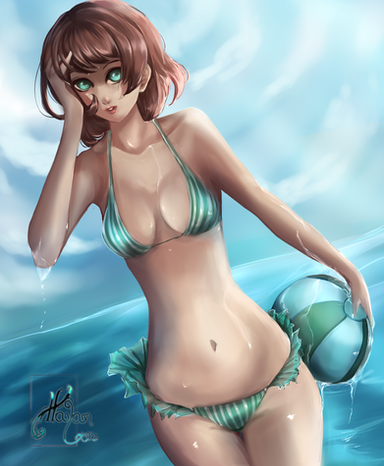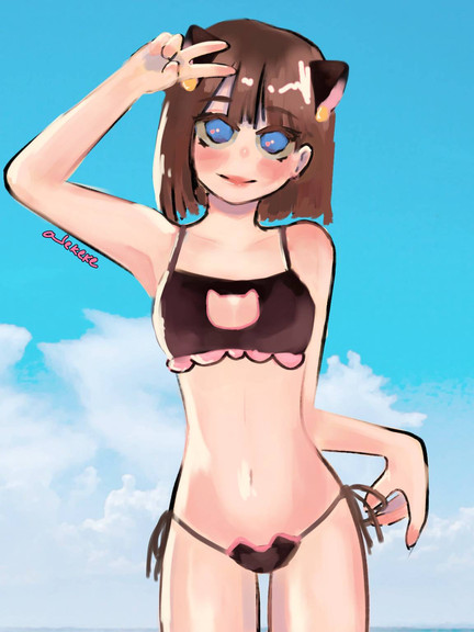 #bow #girl #illustration #shorthair #bikinigirl #bikiniswimsuit #digitalart #digitaldrawing #digitalpainting #animemangagirl #shorthairgirl