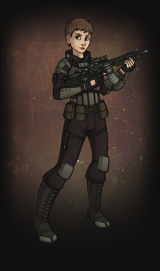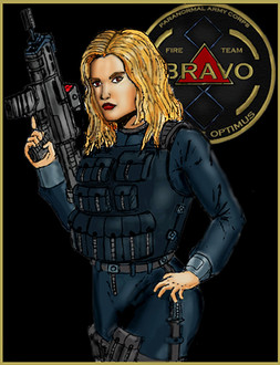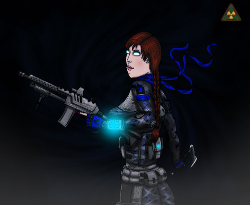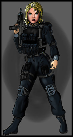 I think you did a good job with the different images you used for you fire team women. They each seemed to stand out with their own distinct personality, but for some reason I found myself drawn to this one over the others. Everything about her seems very straight forward and efficient rather than showy. I also prefer this image over the first version you did of her. Where as the other one was "I'm a sexy woman holding a gun," this one is more "you get in my way, you get shot," plain simple and to the point, I like that.